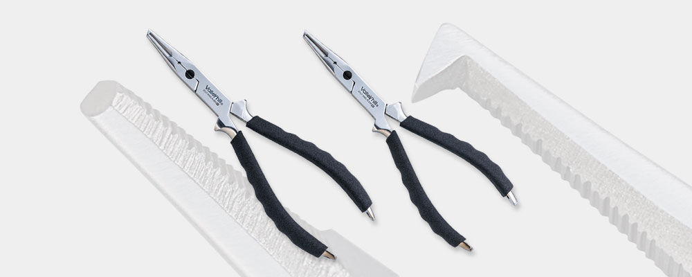 先端をできる限り細く仕上げてるため、スプリットリングが簡単に開き、ノーズ部分を面取り加工しているので、力を入れやすくリングを簡単に回せます。グリップエンドにはカラビナなどを通しやすいストラップホールを搭載。ビッグベイトなどの大型プラグに最適なMサイズ、ミノーなど小型プラグに最適なM-(マイナス)の2タイプ。