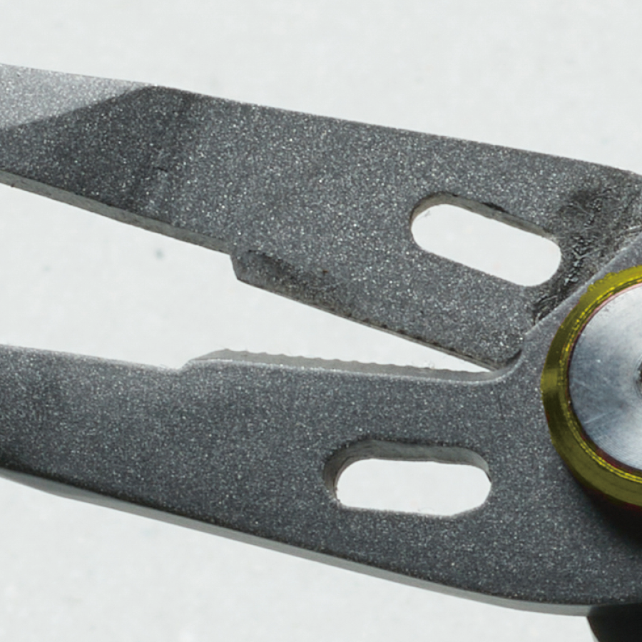 テフロン加工により防錆効果が増しているので、淡水だけでなく、海水でも安心して使用可能!ライトゲームに使われる#1のスプリットリングもストレスなく楽々交換できます。さらにギザ刃のラインカッターも搭載しているので、PEラインもスパスパ切れます!