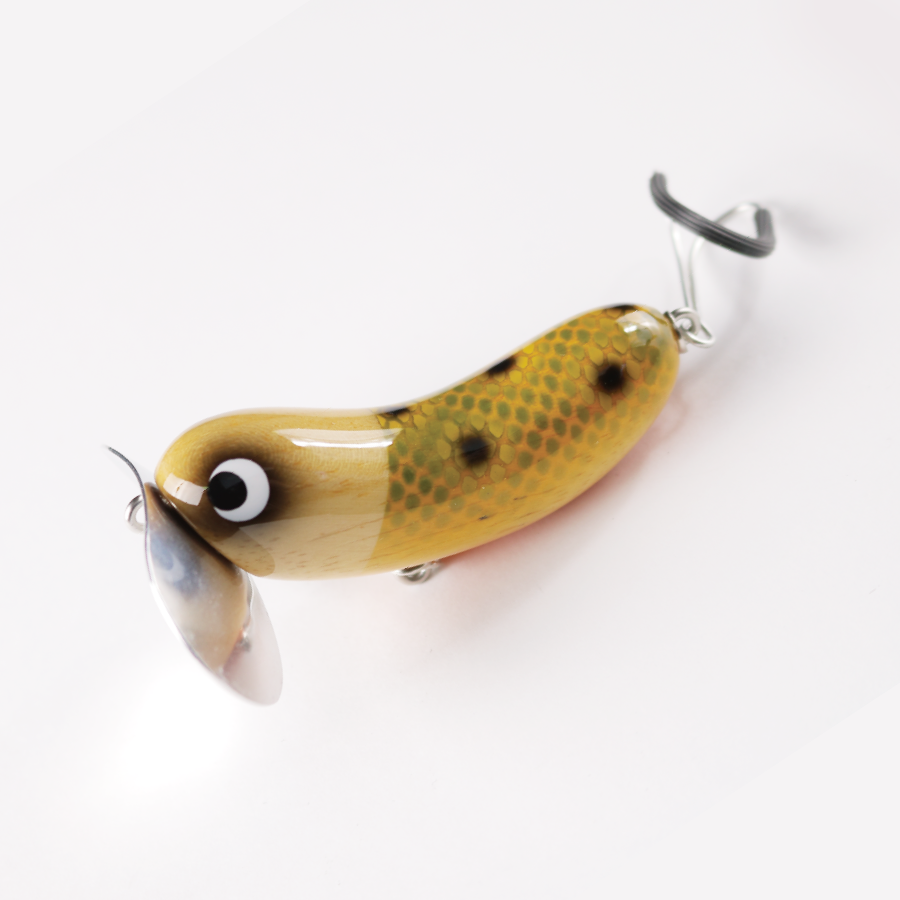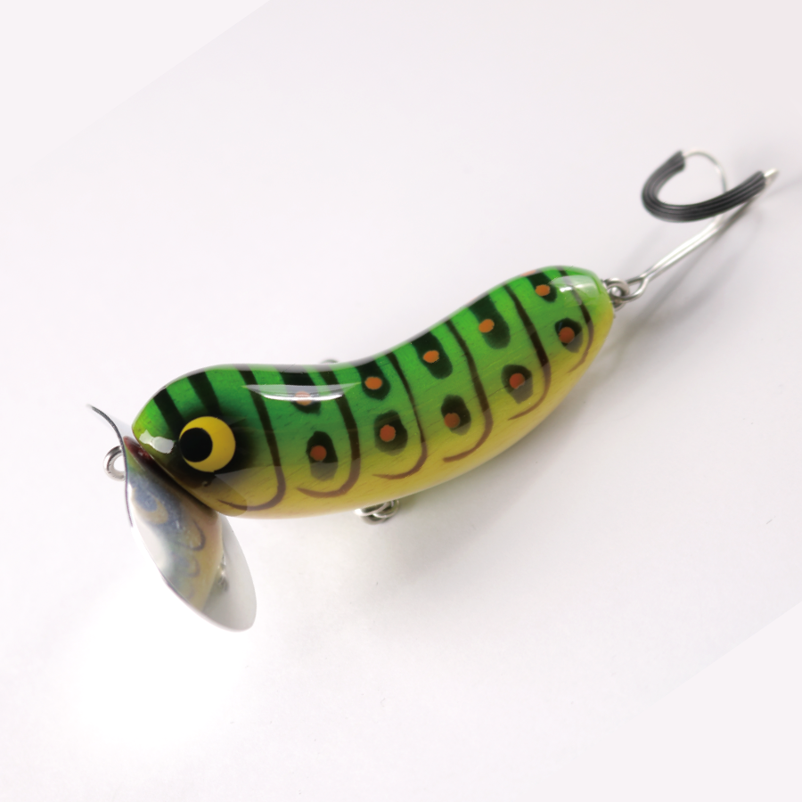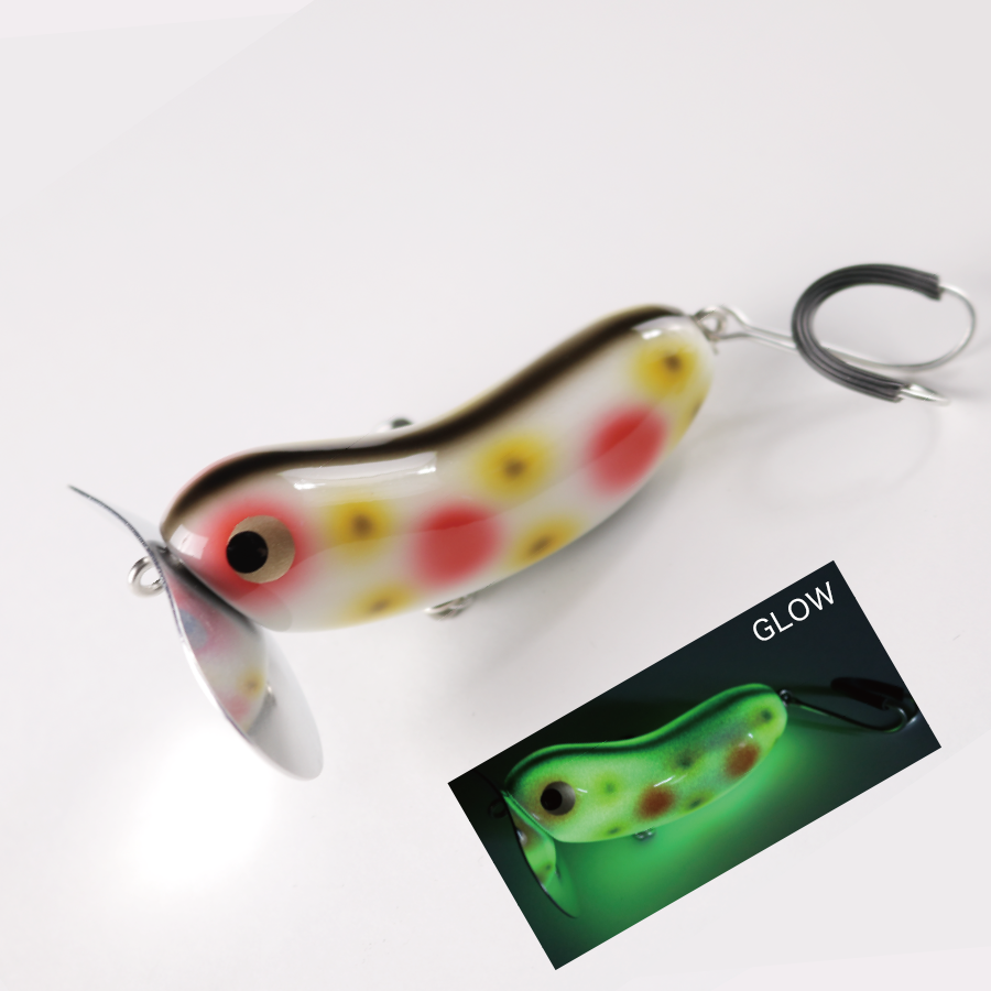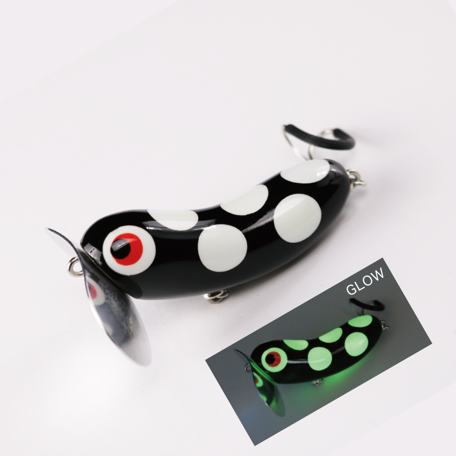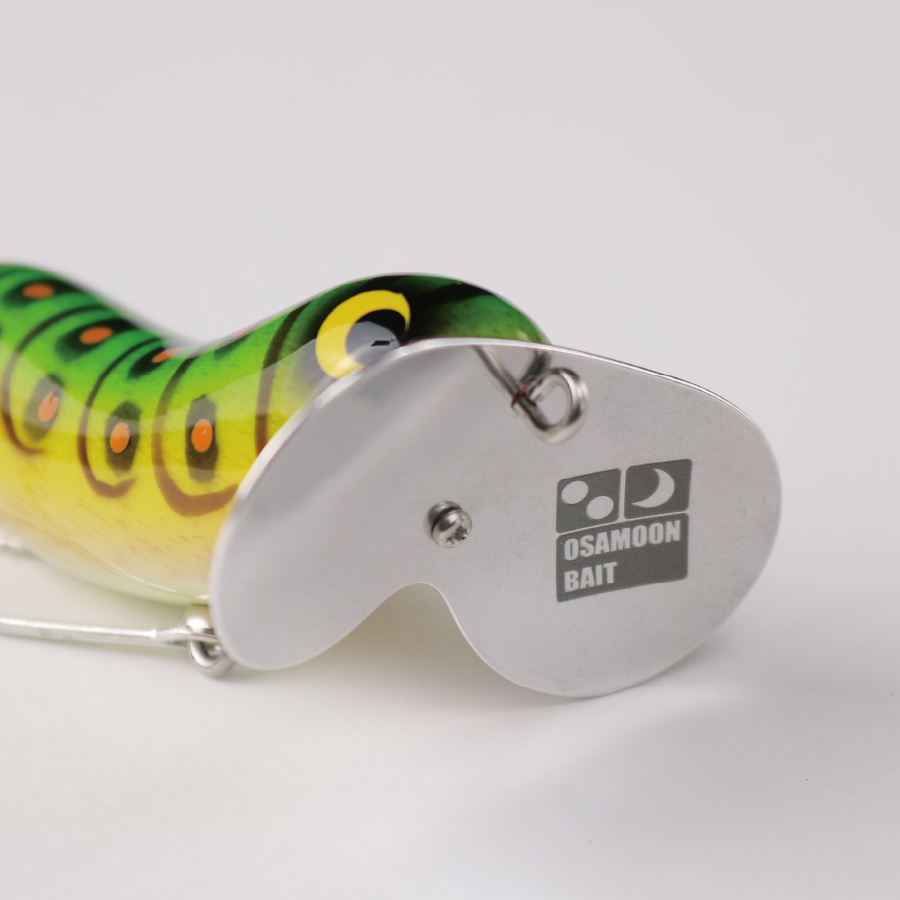WOOD特有の水に絡みつくアクションがナマズを魅了するだけでなく、内部まで詰まったボディでバイトを弾くことなくフッキングに持ち込むことが可能です。カップ部分には形状にこだわり抜いた「オサムーンベイト社」製を採用。着水後はストレスのない立ち上がりの速さと音で、ナマズへの抜群のアピール力を実現しました。フックアイをヒートン仕様にすることでフックを外したブレードチューンやトレブルフックへの交換も可能に。場所とアプローチによって、いろいろなカスタマイズをすることが可能です。